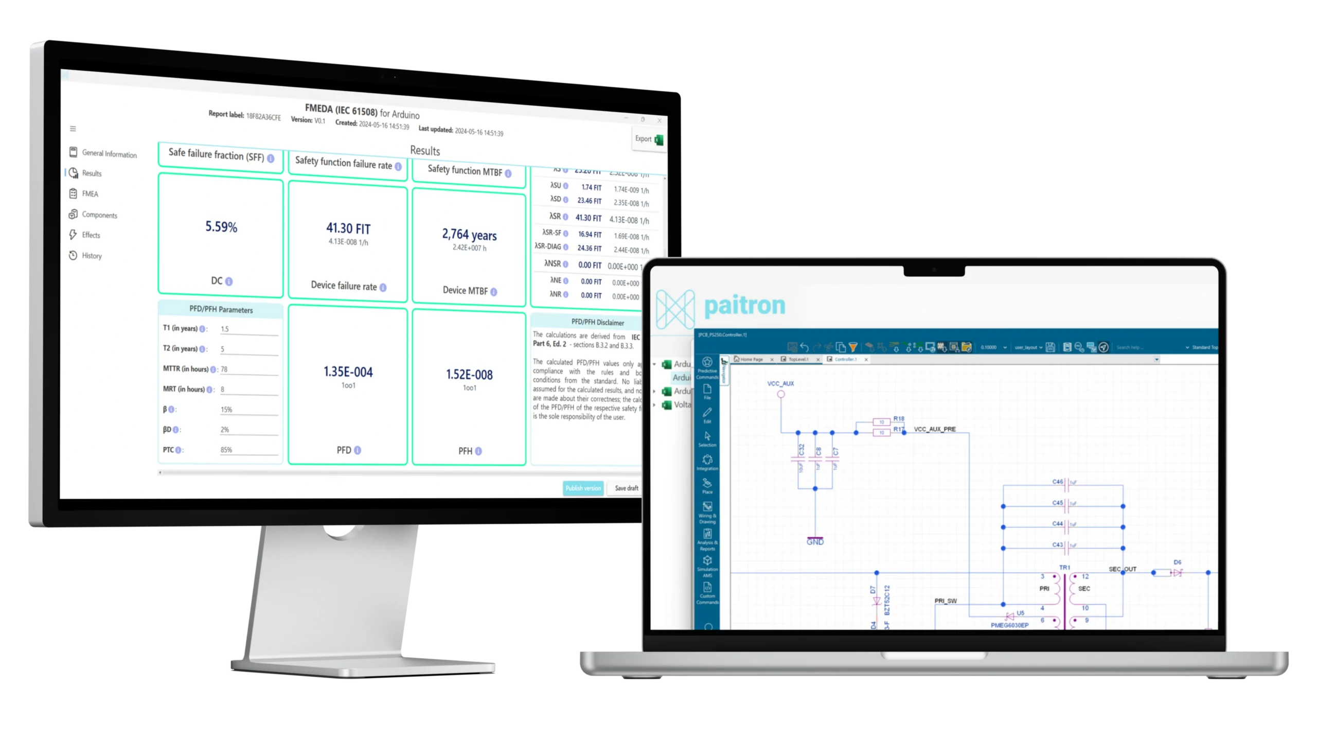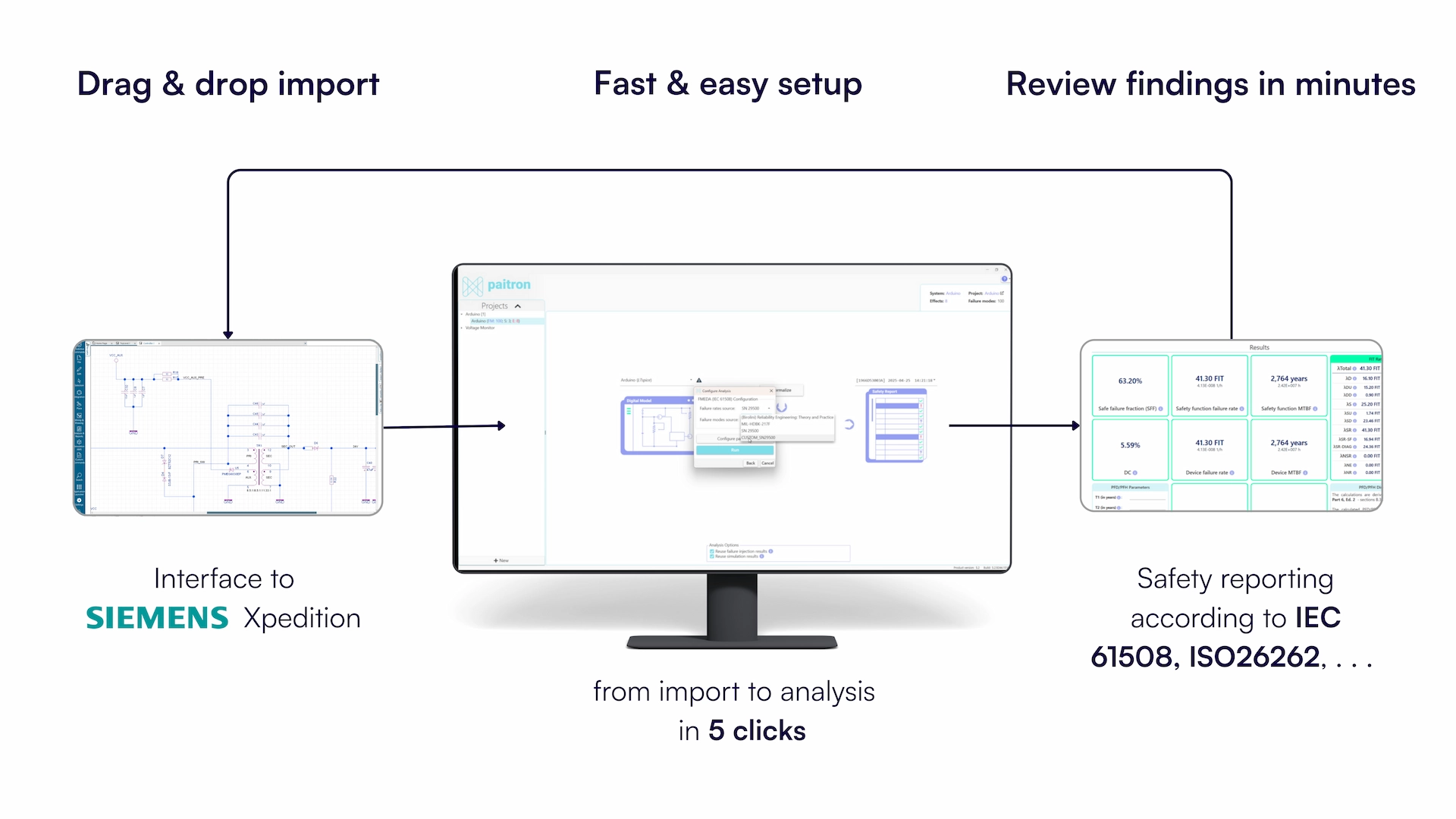 Automated safety analysis (FMEDA according to IEC 61508 & ISO 26262, TÜV SÜD validated) reduces workload from months to hours while empowering your existing engineering team.